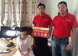 旭派電池領導得知這個事情之后,立即引起關注,覺得有必要為這一家人做點什么,于是旭派公司內(nèi)部進行愛心籌款活動,然后由公司領導帶領旭派電池工作人員一行向周利飛送去旭派電池愛心款。周利飛一家對于旭派電池一行人的愛心舉動表現(xiàn)的很激動。作為一個有著強烈社會責任感的企業(yè),回報社會已早已經(jīng)融入了每一位旭派人的思想和行為中,做好旭派電池產(chǎn)品質(zhì)量是對社會負責,積極投入到社會愛心事業(yè)中去更是一種負責任的態(tài)度,通過這件事,旭派電池日后定會多多組織形式多樣的捐助愛心活動。讓旭派人的愛心隨處播種。